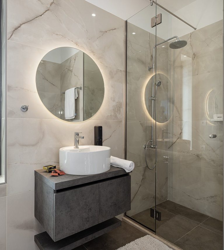 Level +1 (First Floor): Here we meet bedroom #6 with its own bathroom with shower, 42’ TV, and possibility for 1 KING SIZE BED or 2 SINGLE BEDS